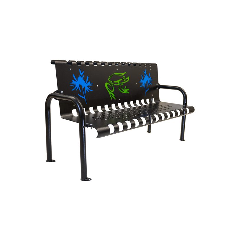 These 5-ft. benches feature one continuous 3/16” steel plate with customizable back panel. Perfect for any garden, park or trail area – or even town and city streets. Features 1-1/2" schedule pipe legs and arm rests, with hand-welded flanges to easily bolt to sidewalks or patios for added security. Powder coated for durability (choice of colors).