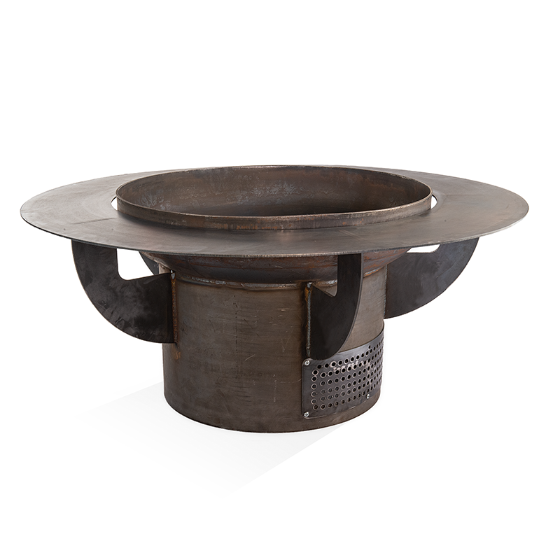 These unique wood-burning pedestal fire pits are constructed from ¼” steel and hand-welded. Brackets can be customized to add personal flair to your backyard, lake cabin or park and are an extra special touch. Total of 21.5” tall and 46” width, includes a 30” diameter fire bowl.
